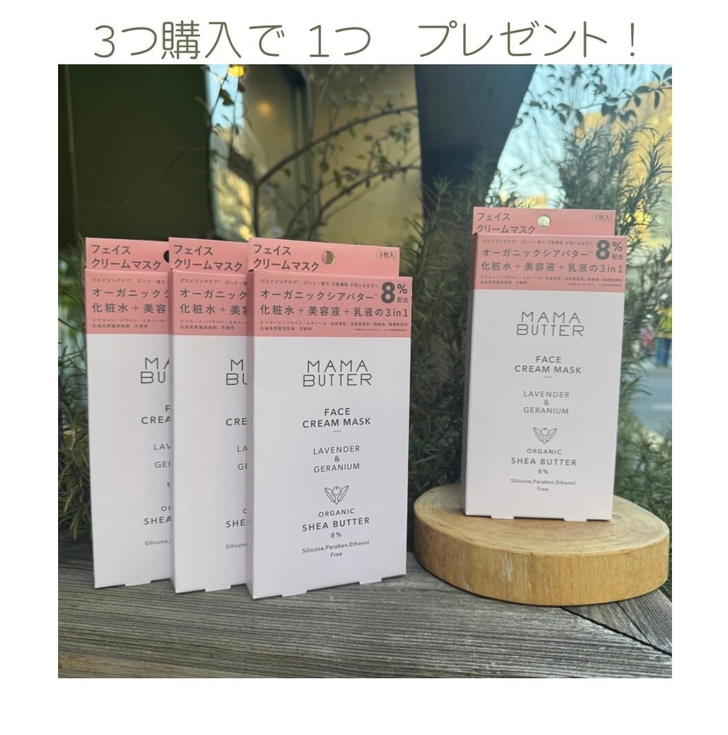 ママバター フェイスクリームマスク3枚入り3個 +1個プレゼント!