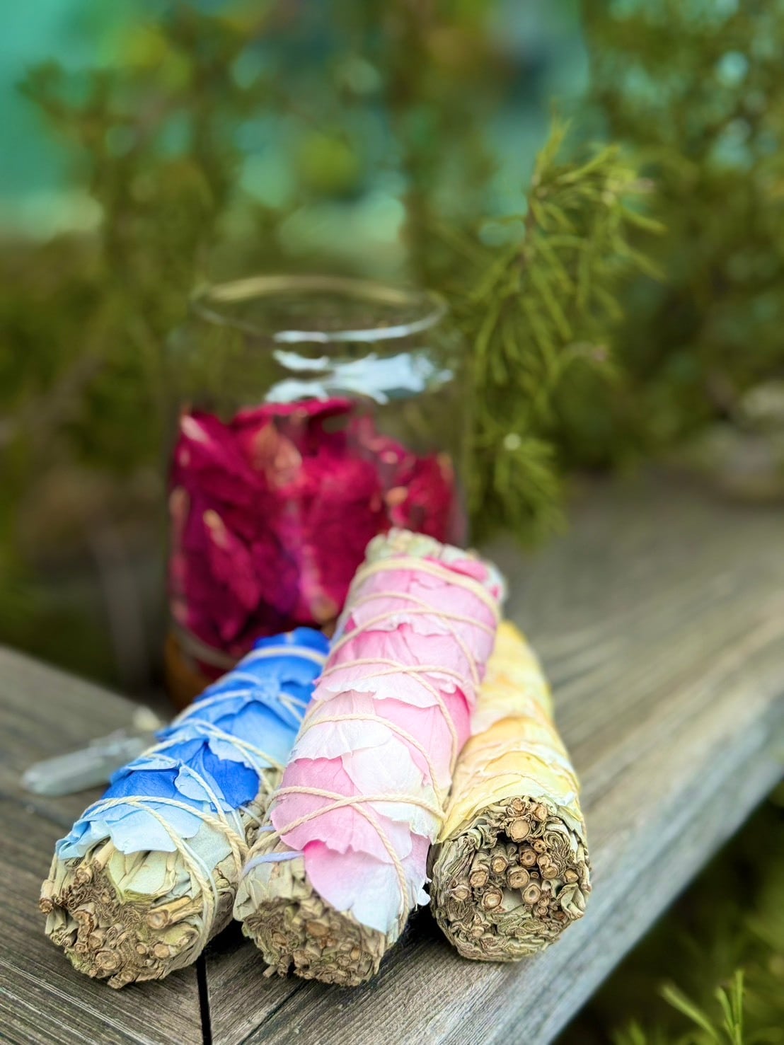 色鮮やかなドライフラワーを束ねた、香りも楽しめるセージスティックです。